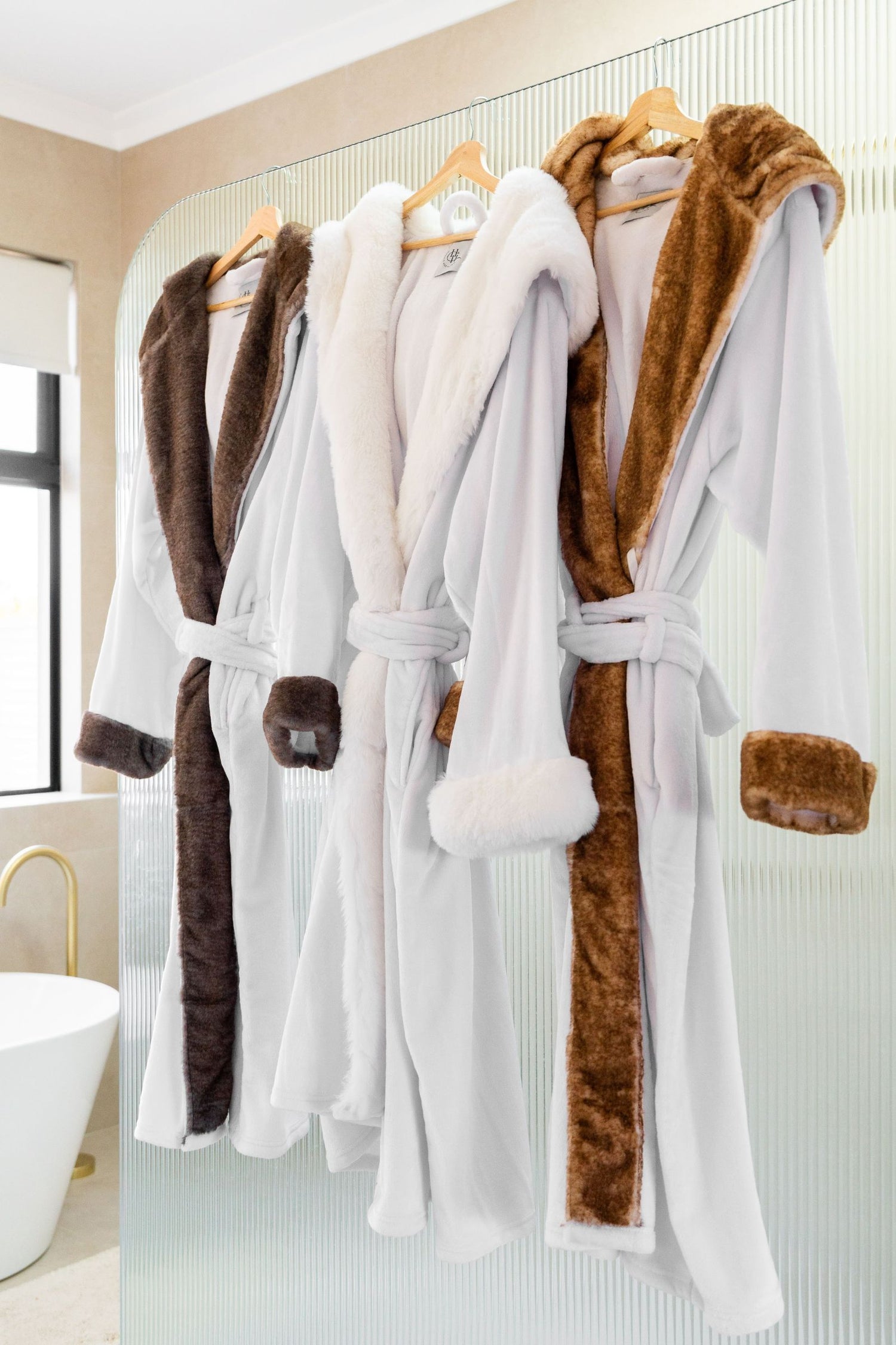 The Haven Robe is crafted from the most luxurious, soft, and plush materials, ensuring an unparalleled level of comfort. The moment you slip into this robe, you'll feel the difference. The sumptuous fabric and thick, cosy faux fur trimmings create a warm, comforting embrace that will make you feel like you're wrapped in a cloud of pure bliss.